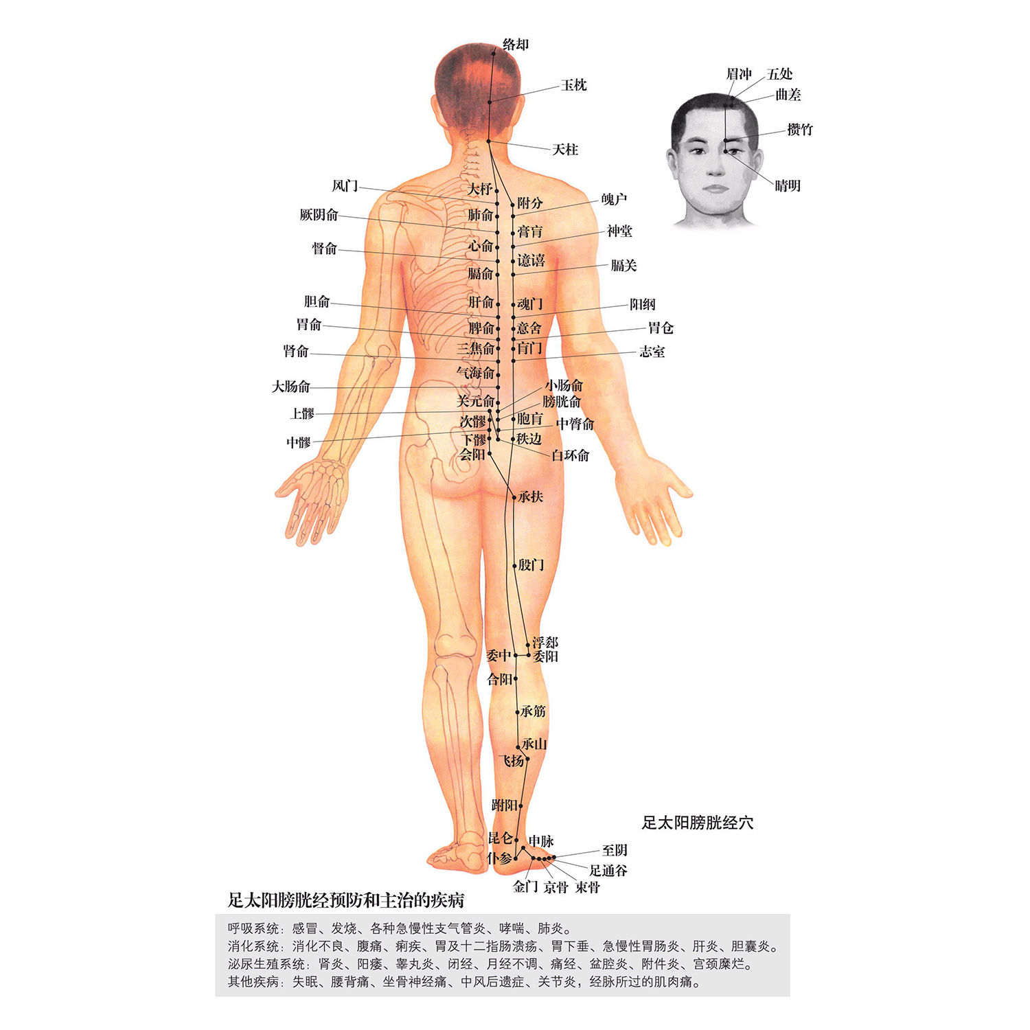 人体器官足太阳膀胱经穴位图足太阳膀胱经预防和主治的疾病海报
