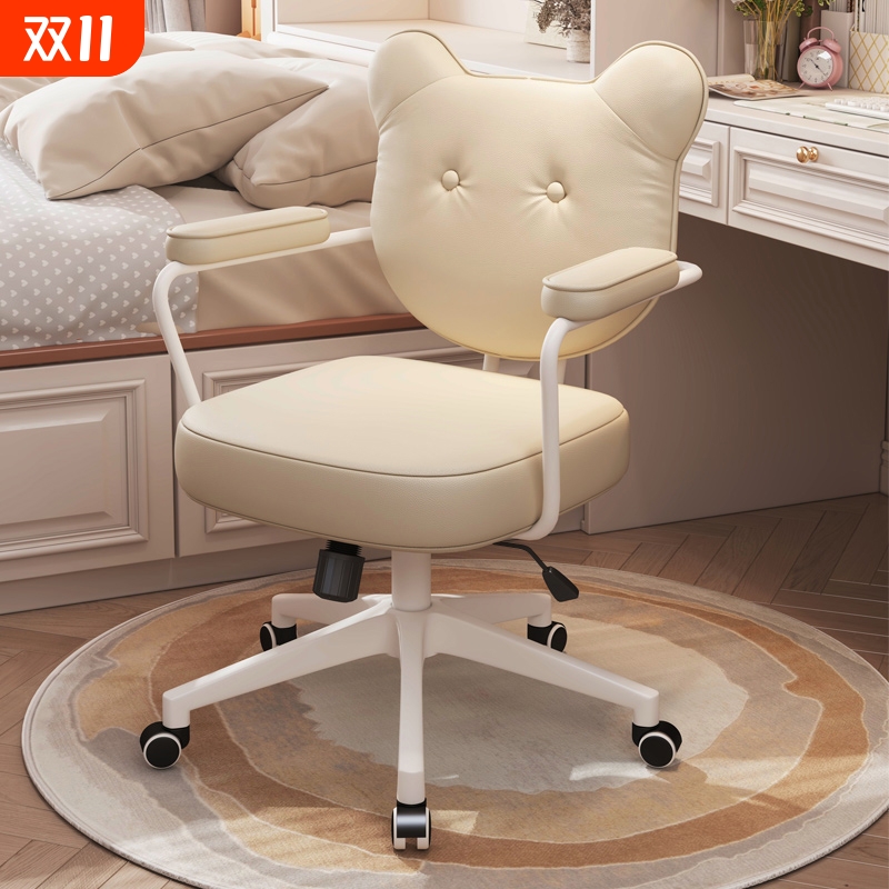 电脑椅家用久坐舒适女生卧室靠背旋转化妆椅子宿舍小熊学习椅书房