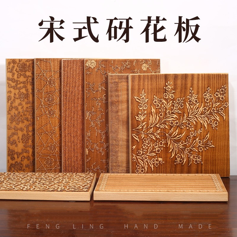 仿宋砑花板 传统砑花榉木信笺宝相花祥云冰梅八宝久留贴