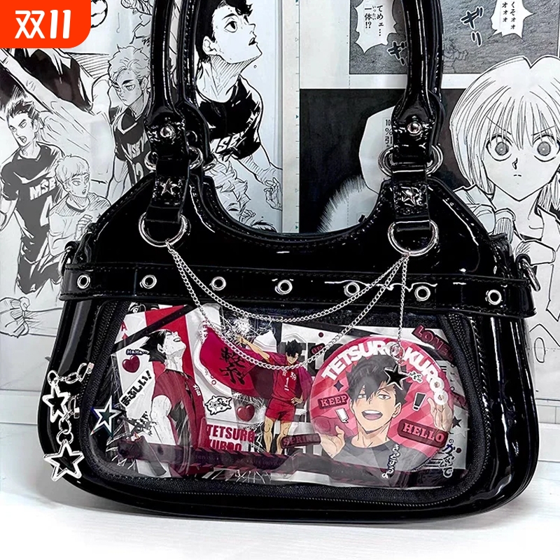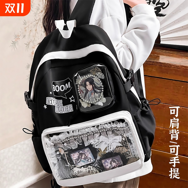 黑白之境双肩包痛包吧唧二次元透明谷子大食量背包初中书包吧唧