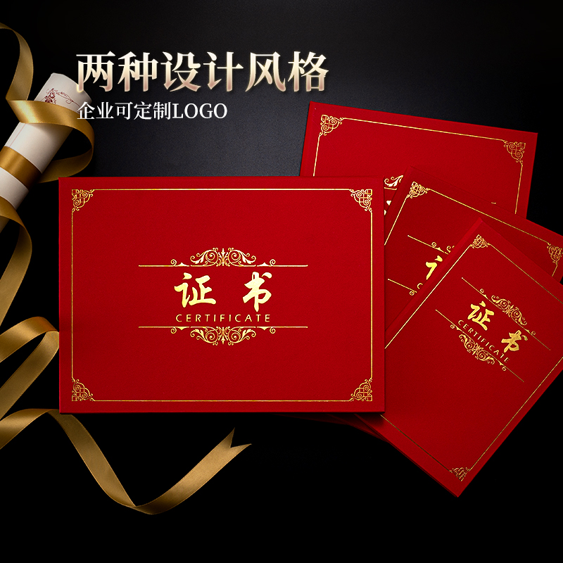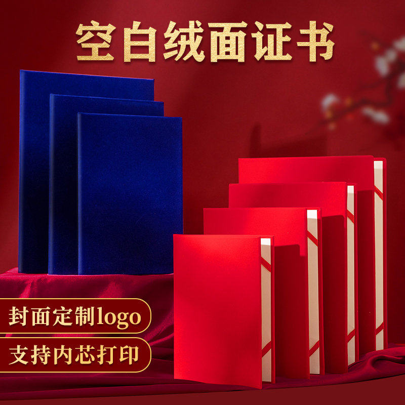 加厚红蓝色绒面证书外壳定制LOGO