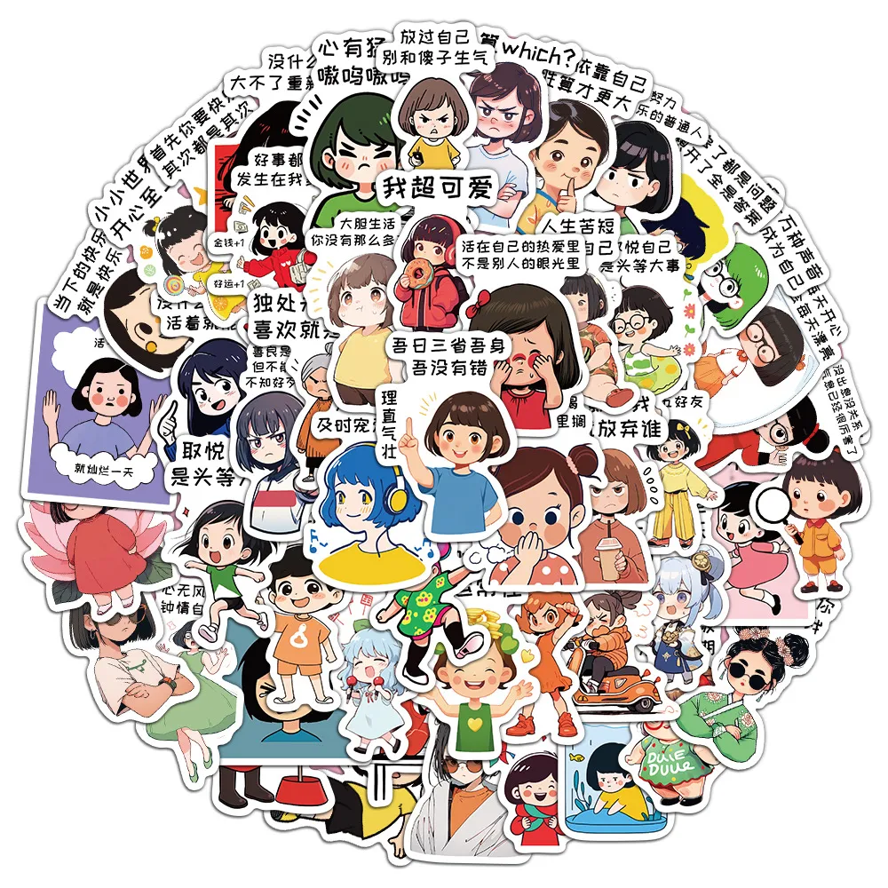 50张乐观语录贴纸治愈系文案可爱卡通装饰手机壳行李箱防水封口贴