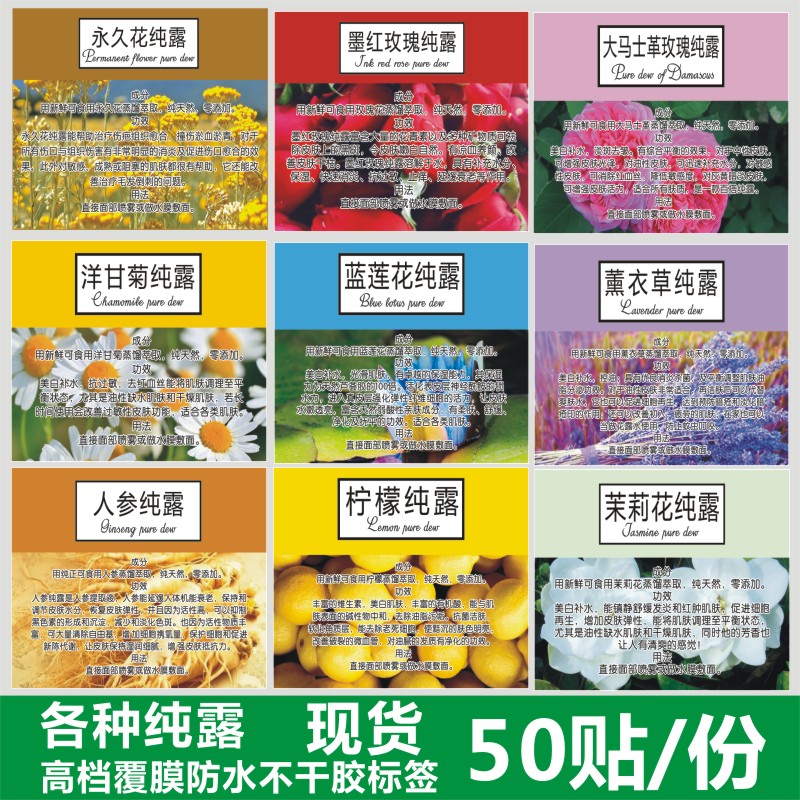 诗束 益母艾香蜂草纯露不干胶标签仙人掌芦荟雪松阿曼绿乳香纯露贴