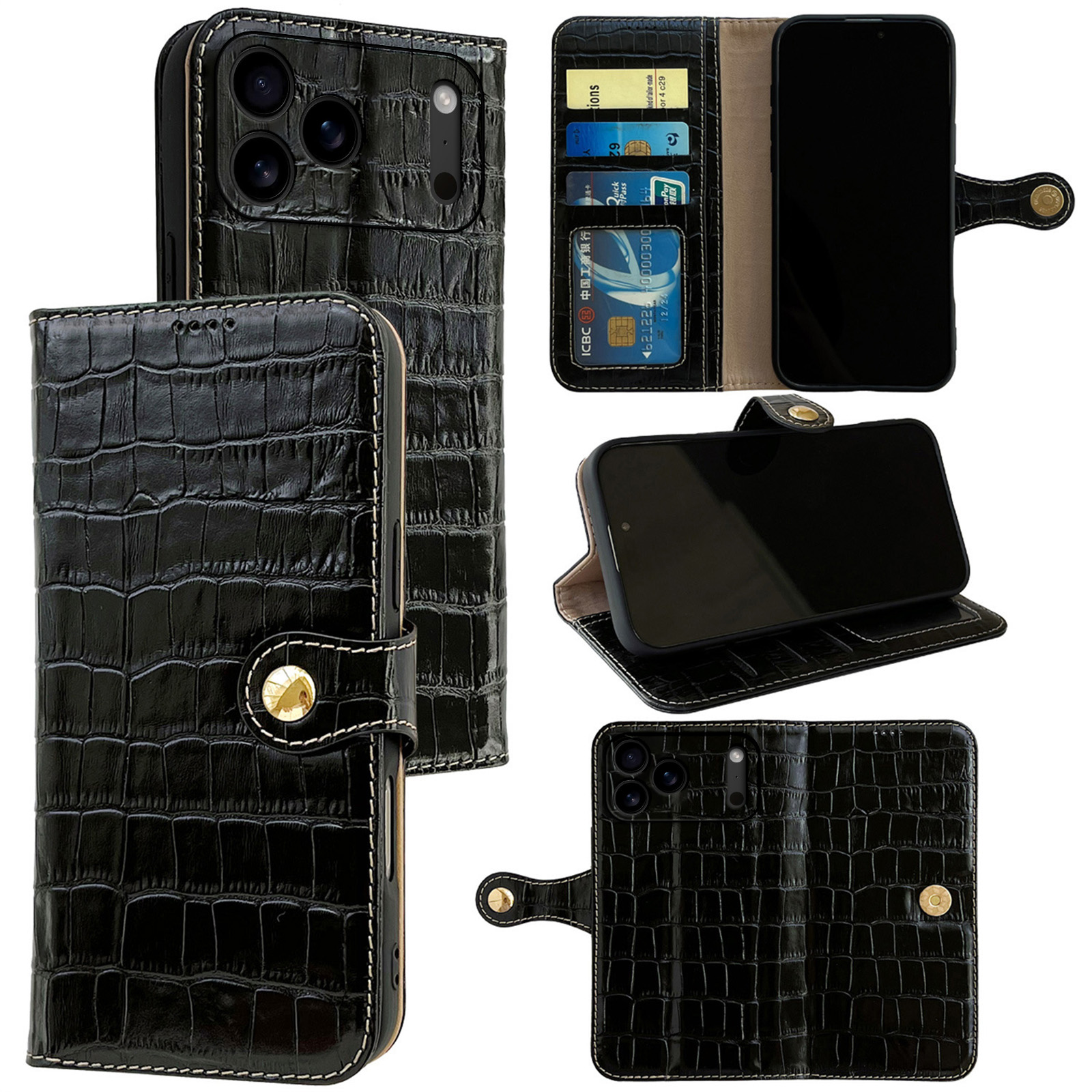 i17牛皮鳄鱼纹搭扣钱包手机壳
