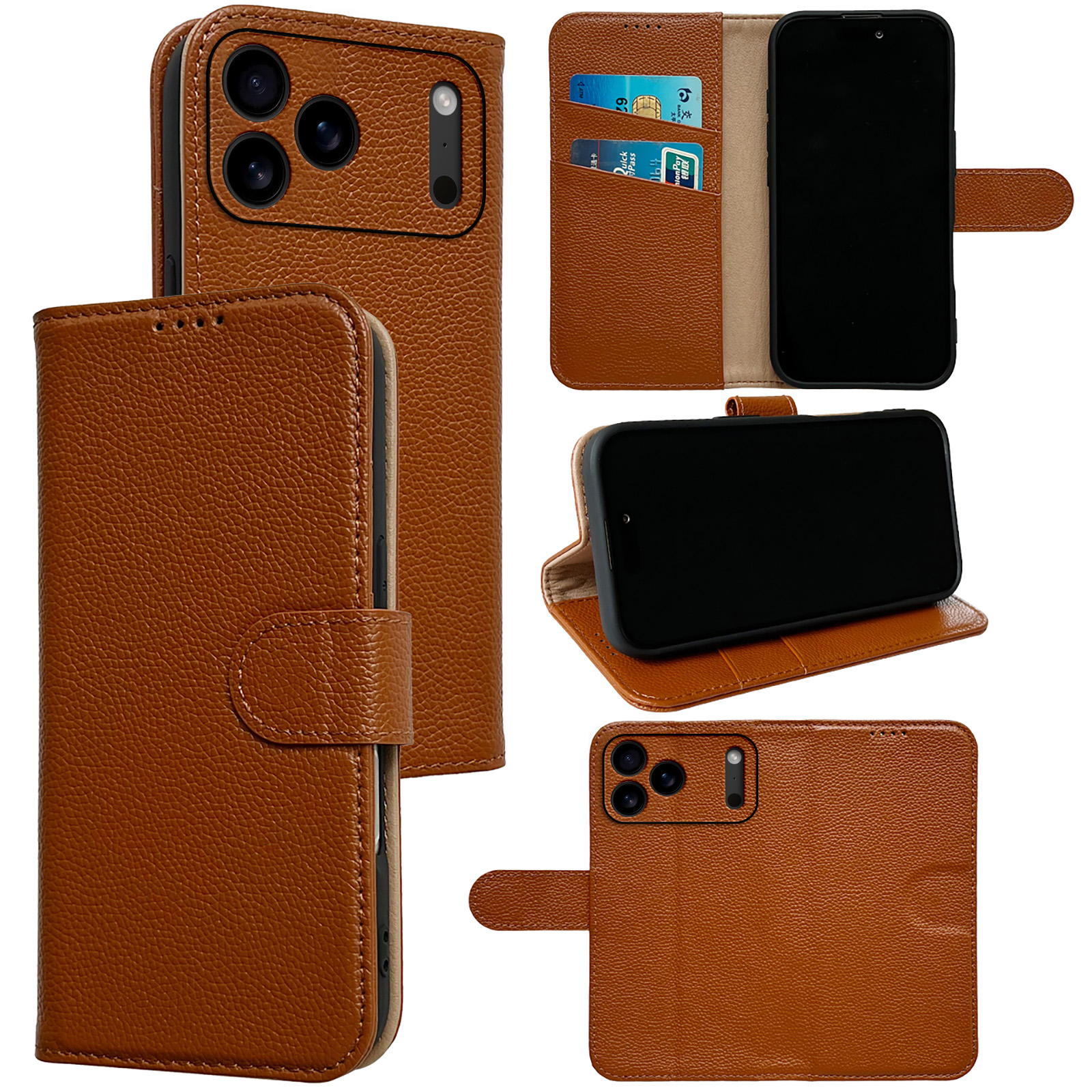 i17荔枝纹钱包款真牛皮手机壳套