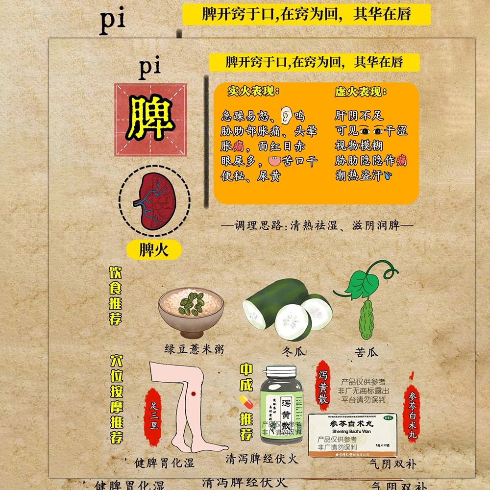 五脏上火中医养生调理去火降噪经络穴位按摩疏通知识点科普小卡