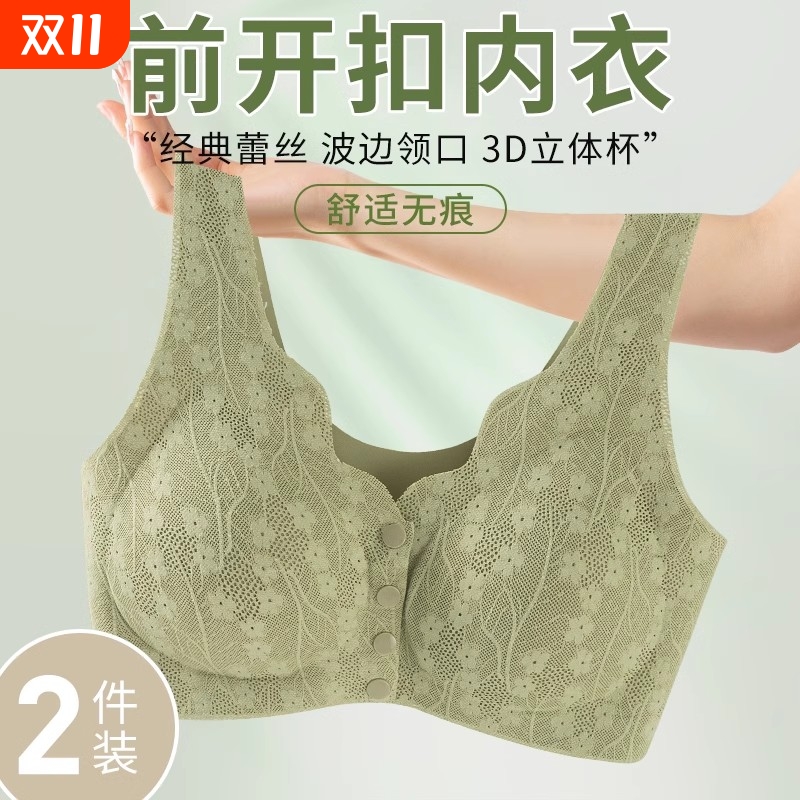 妈妈内衣女前扣文胸无钢圈背心式胸罩中老年人妇女无痕大码夏薄款