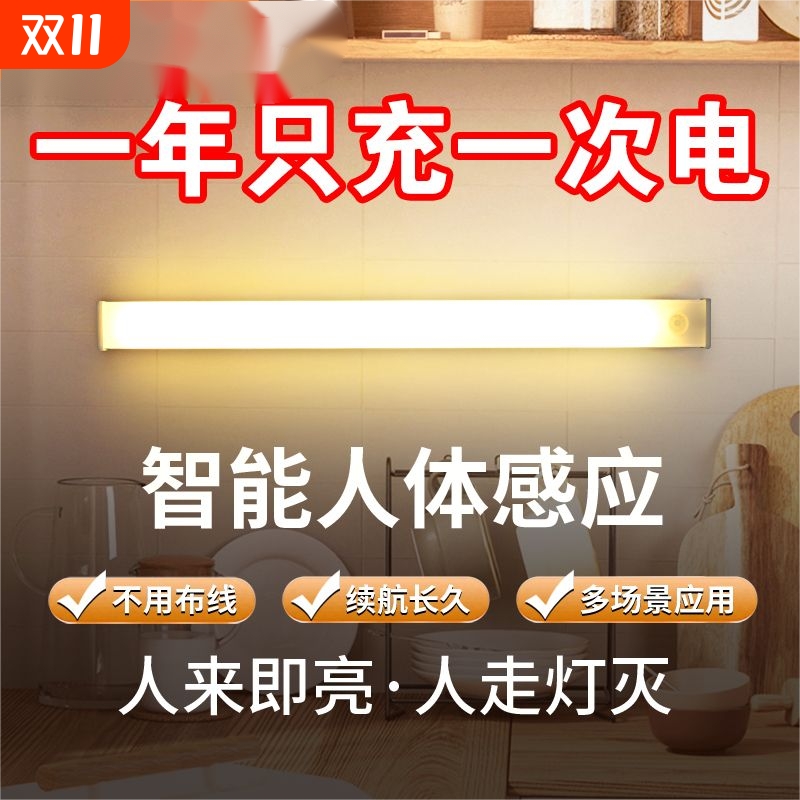 人来即亮充电人体感应灯磁吸灯夜间自动感应带过道入户灯条无线