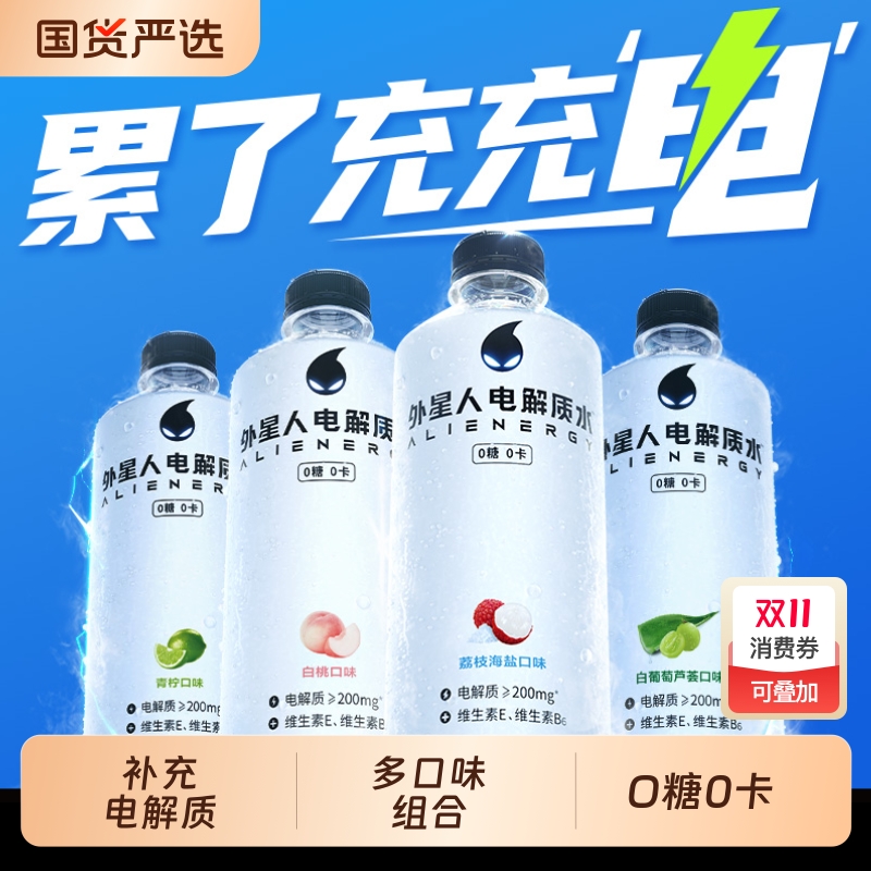外星人电解质水500ml*5/15瓶青柠白桃荔枝味元气森林运动健