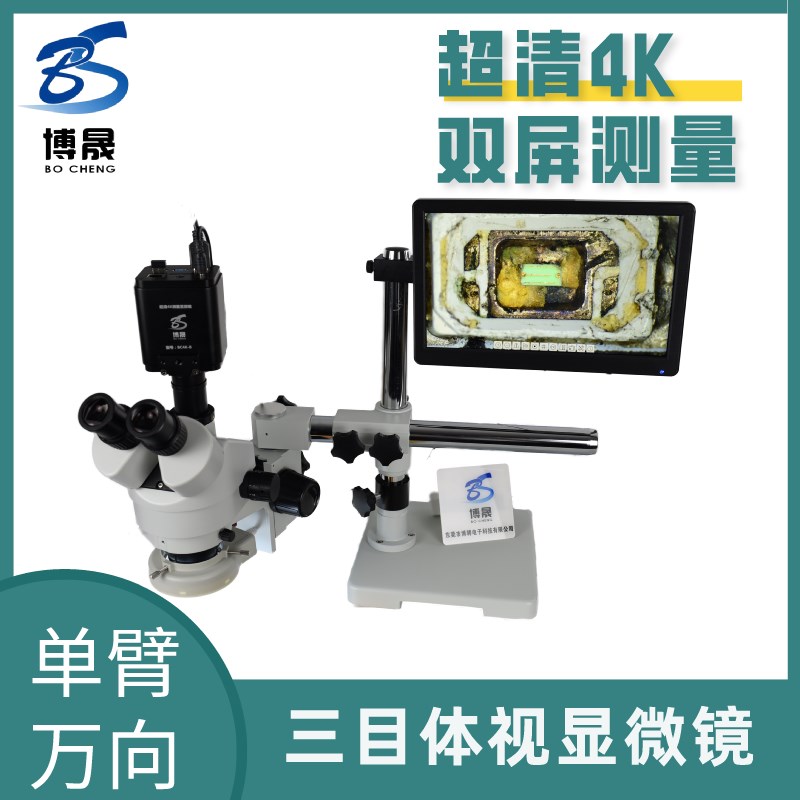 博晟超清4K双臂向三目体式显微镜电子显微镜数码拍照储存同步调