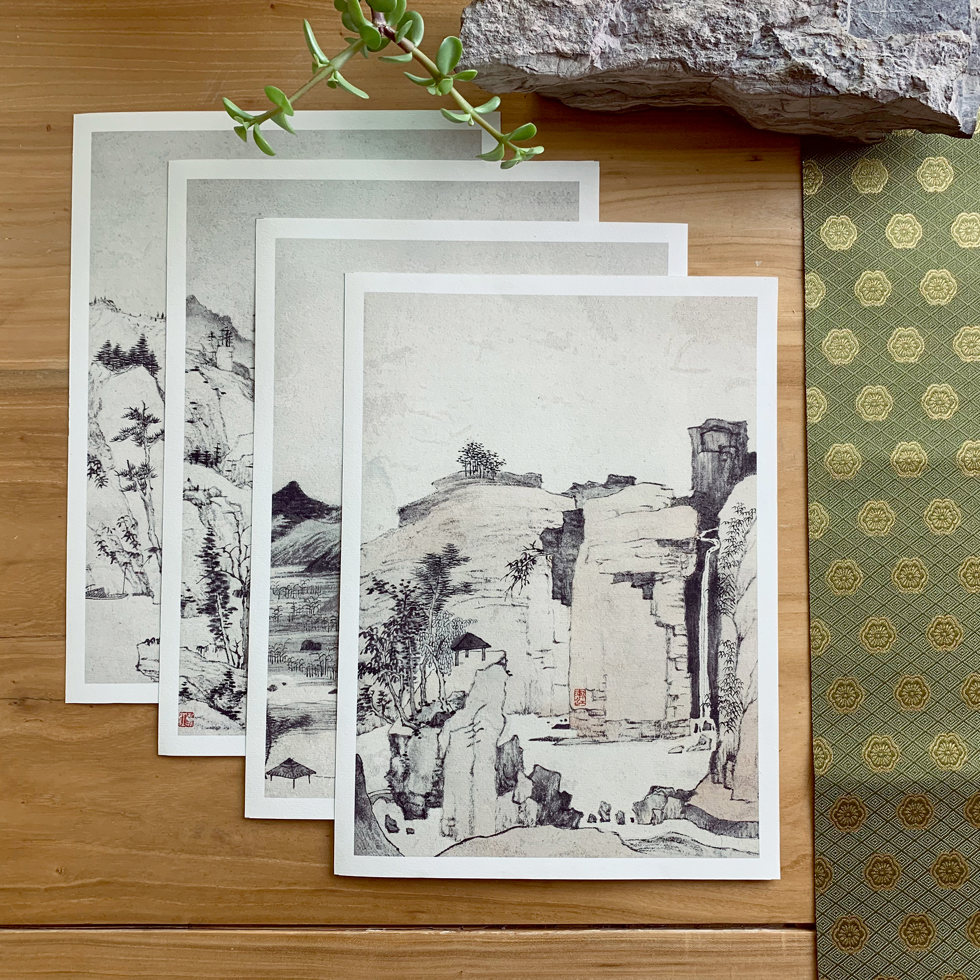 清代 弘仁经典山水册页名品 八帧高清微喷复制品单页画稿临摹画芯山