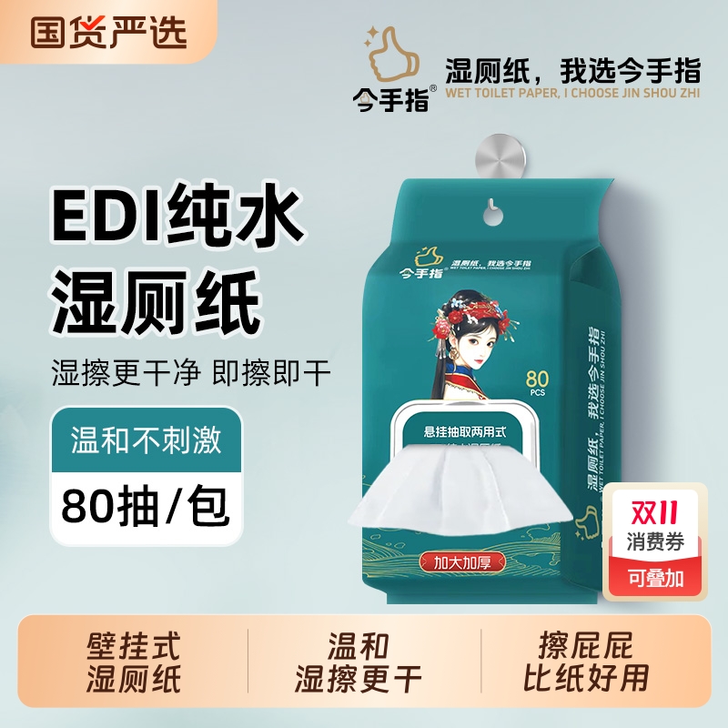 今手指抽取式湿厕纸专用清洁擦屁屁孕妇可用湿巾超柔可降解80抽