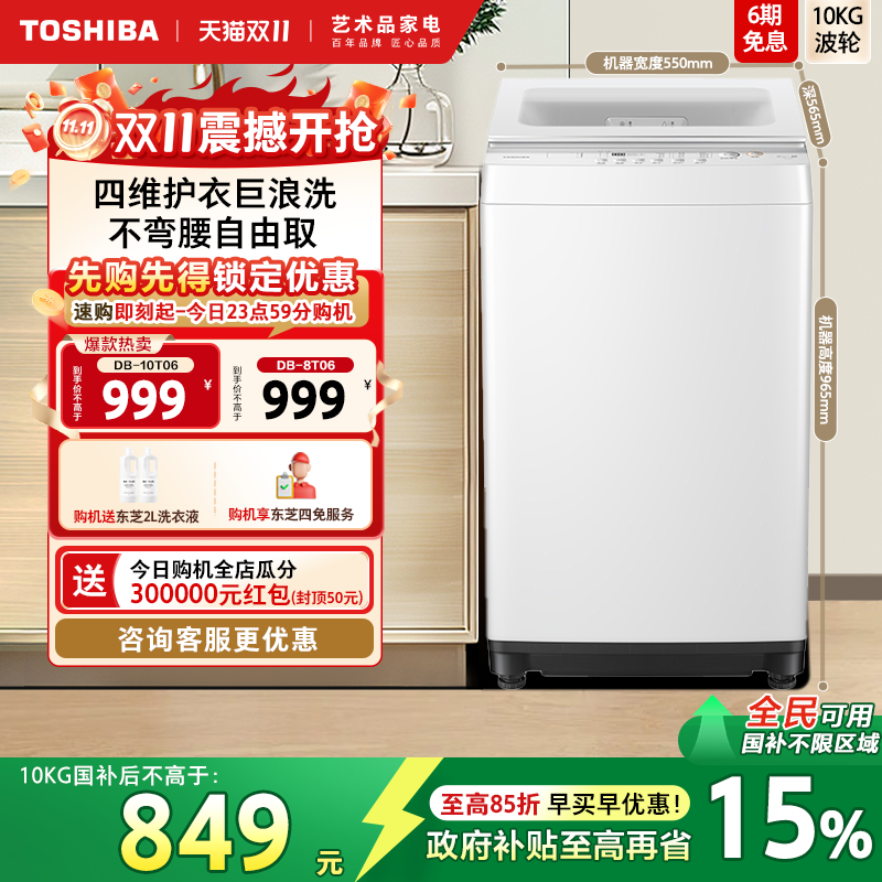 [全民国补]东芝10/12kg变频波轮