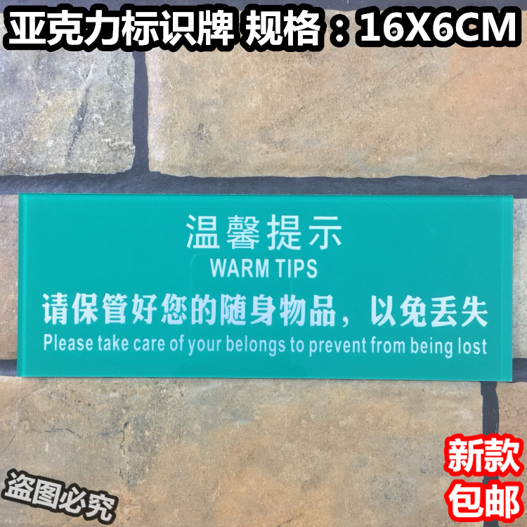 请保管好您的随身物品以免丢失亚克力标识牌温馨提示标志标示标语