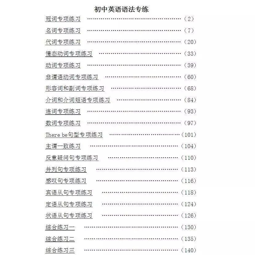 初中英语语法专项练习习题以及答案Word电子版共150页