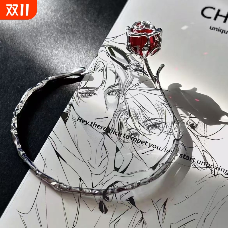 以瑰之名 冰山熔岩红玫瑰花朵藤蔓缠绕手镯高颜值手饰送女友礼物