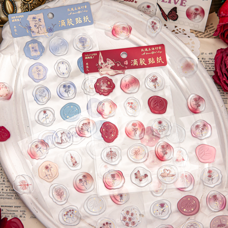 以玫瑰之名烫金立体浮雕滴胶贴纸