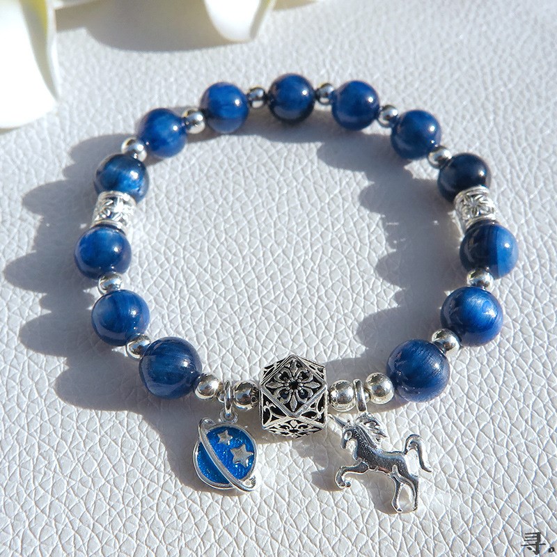 天然蓝晶石手链925银以梦为马蓝色星球手链蓝水晶手串