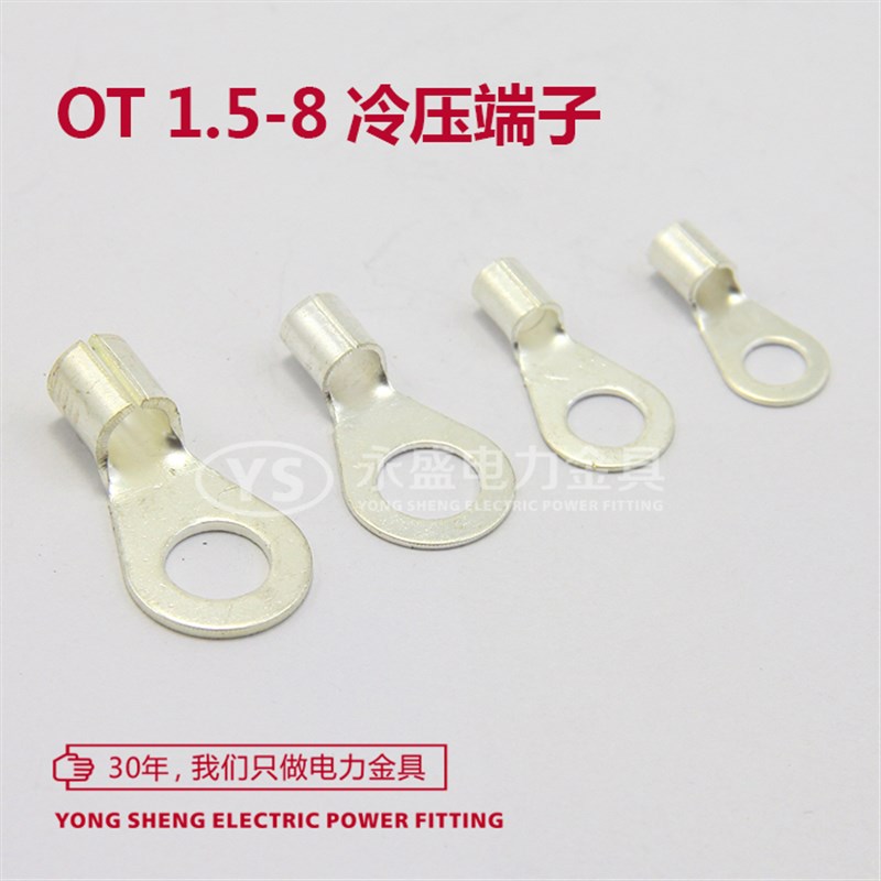 OT1.5-8冷压接线端子 圆形裸端头 铜鼻子 线头 1000只