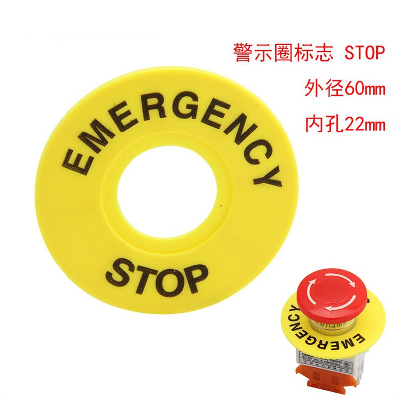 急停标牌 黄色按钮牌 标示 警示牌 按钮开关用 外径60mm内径