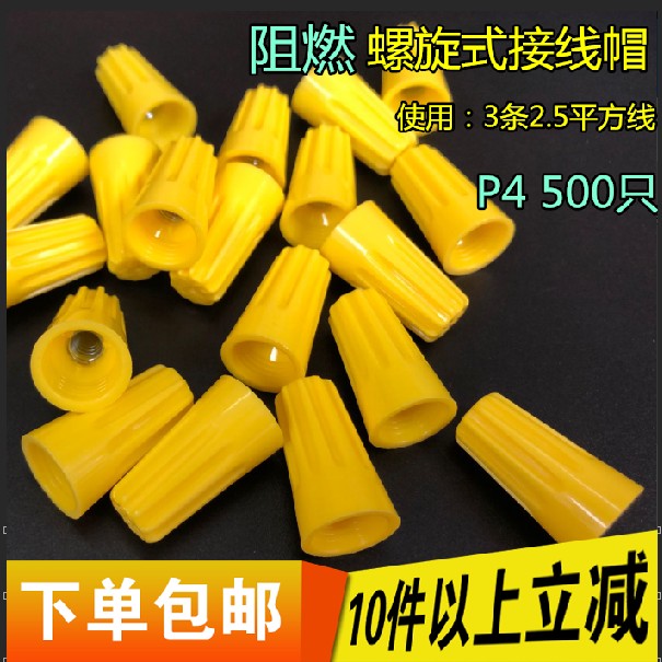 阻燃金笔螺旋式接线帽P4弹簧螺式电线连接器闭端子 500只黄色