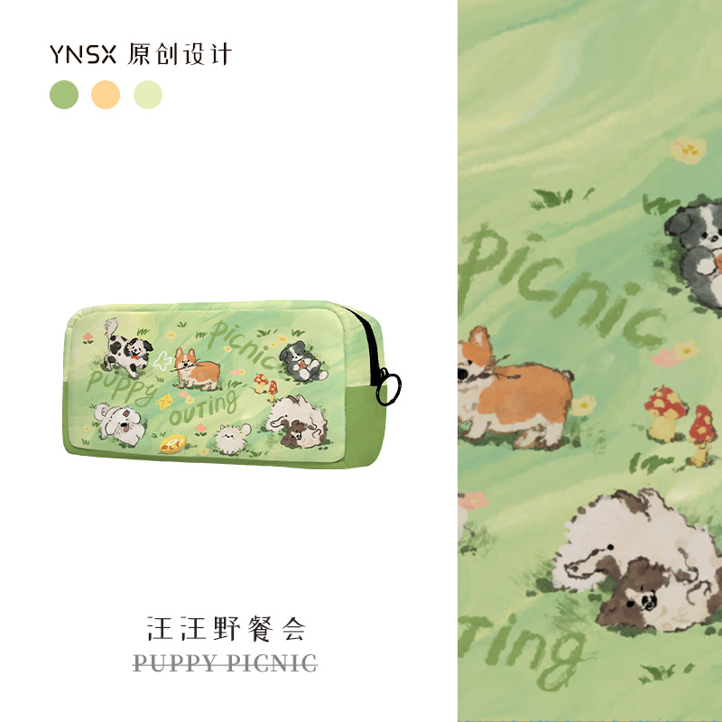 印你所想原创汪汪野餐会绿色笔袋高颜值女2025新款小众不撞款帆布