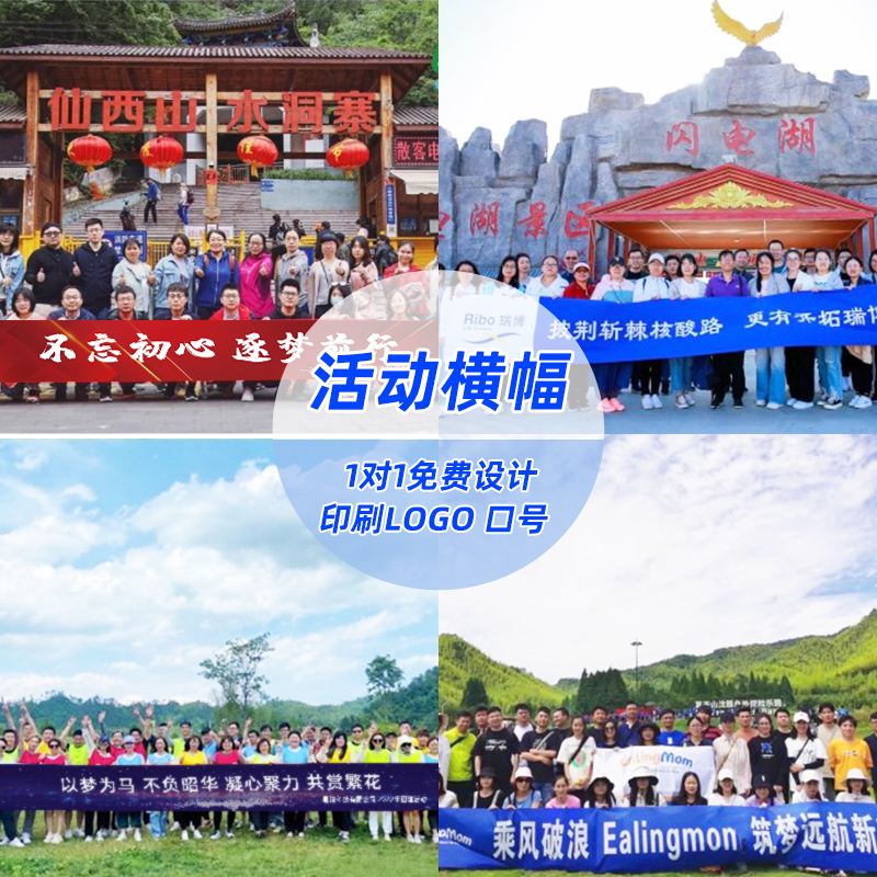 团建横幅定制定做公司年中会蓝色拉条开业宣传布条广告旗设计单位