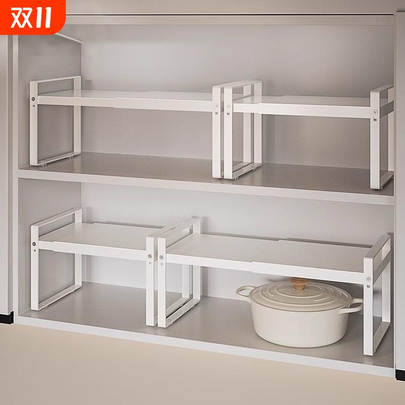 可伸缩厨房置物架橱柜隔板分层架家用柜内台面调料收纳下水槽锅架