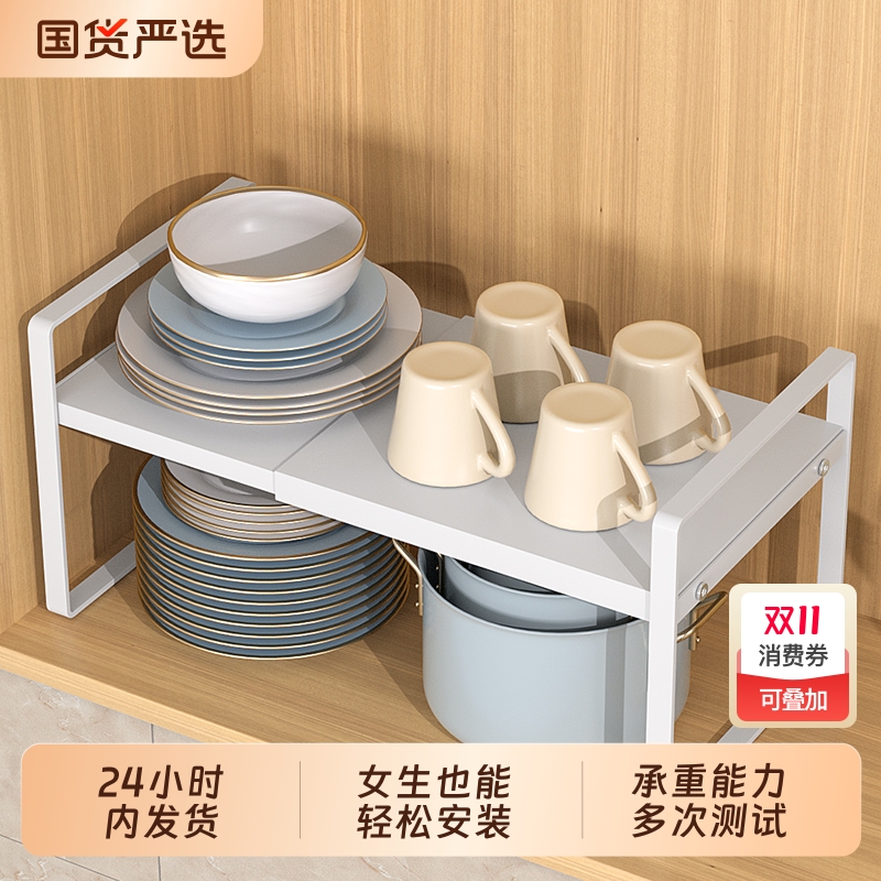 可伸缩厨房置物架橱柜内分层架子隔板多层锅架调料碗碟台面收纳架