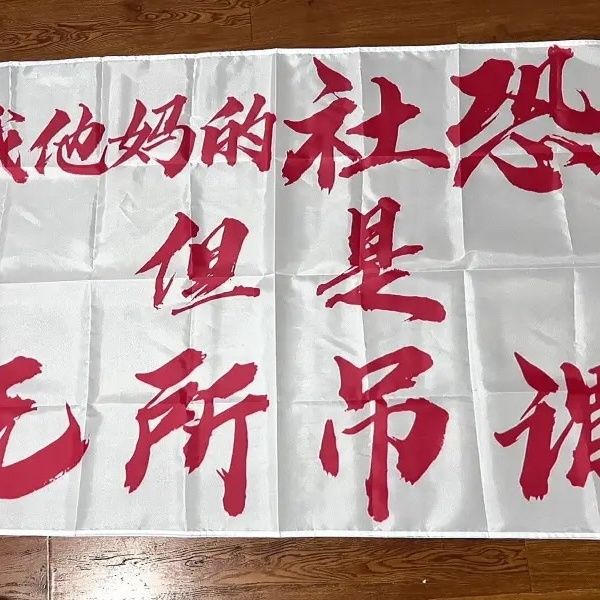 我他妈的社恐但是无所吊谓旗子定做登山大旗音乐节手摇旗定制文案