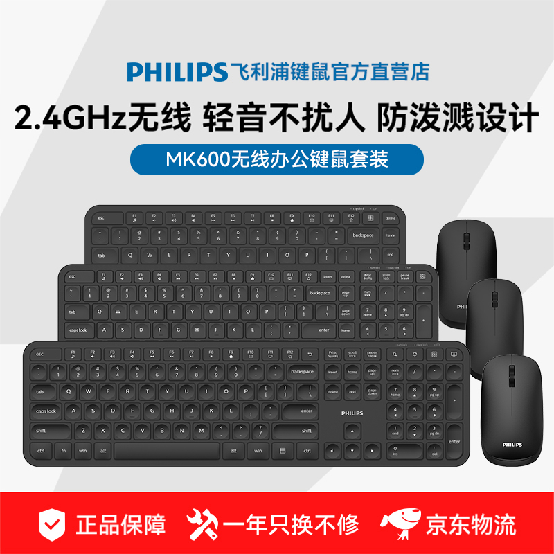 飞利浦MK600无线键盘鼠标套装静音便携低延迟人体工学台式通用