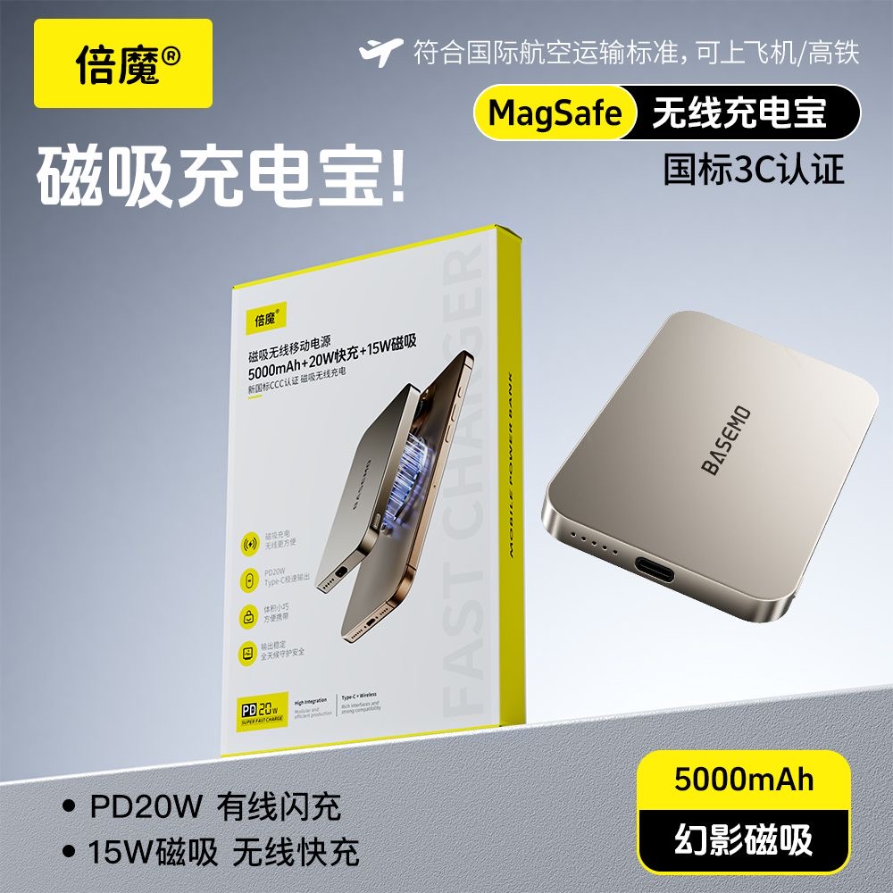 带3C认证新国标5000mah磁吸充电宝