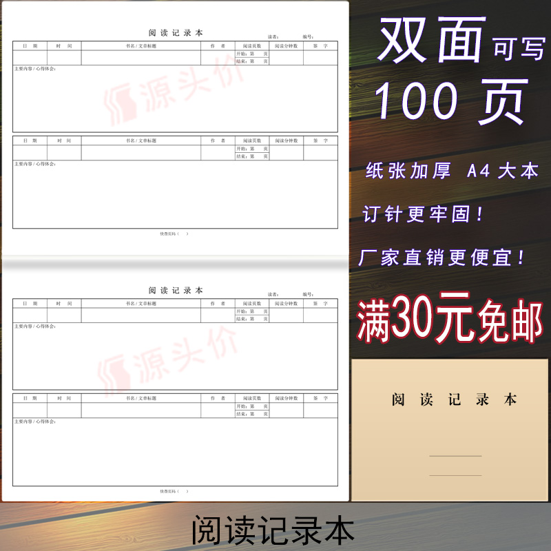 亲子共读本 幼儿园小学阅读感受体会纸培训机构早教阅读亲子卡A5