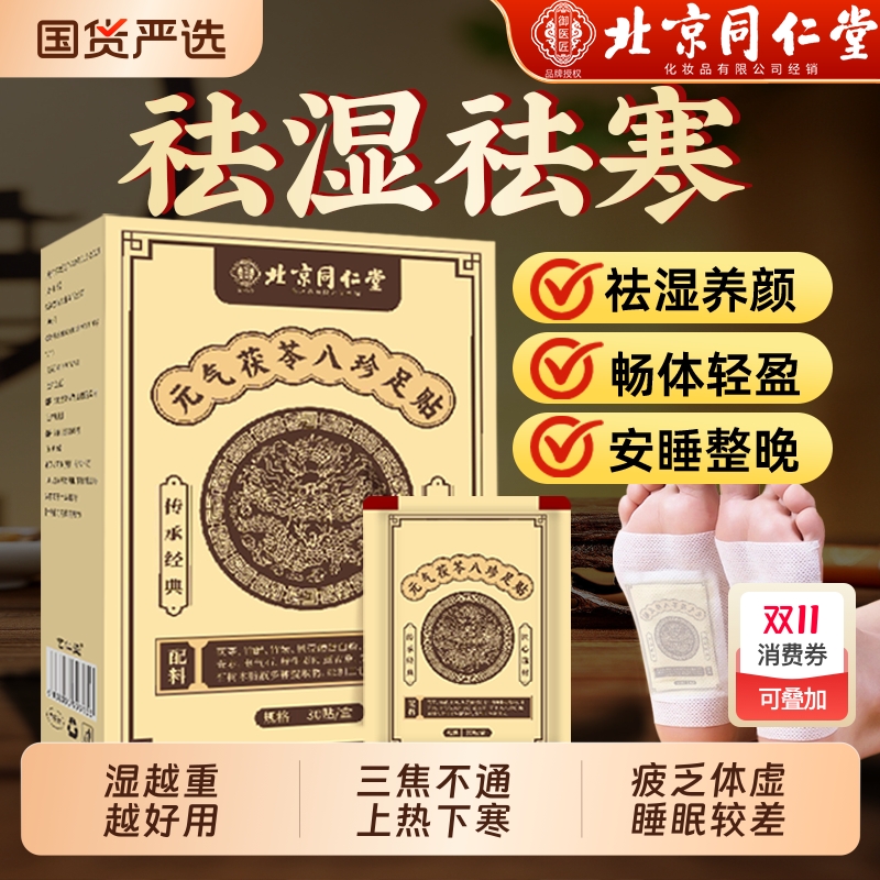 北京同仁堂元气茯苓八珍足贴老北京艾草足贴去湿气排毒排体内湿寒