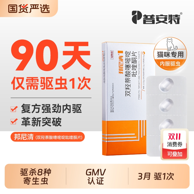 普安特猫内驱猫咪体内驱虫药宠物用双羟萘酸噻嘧啶吡喹酮片邦尼清