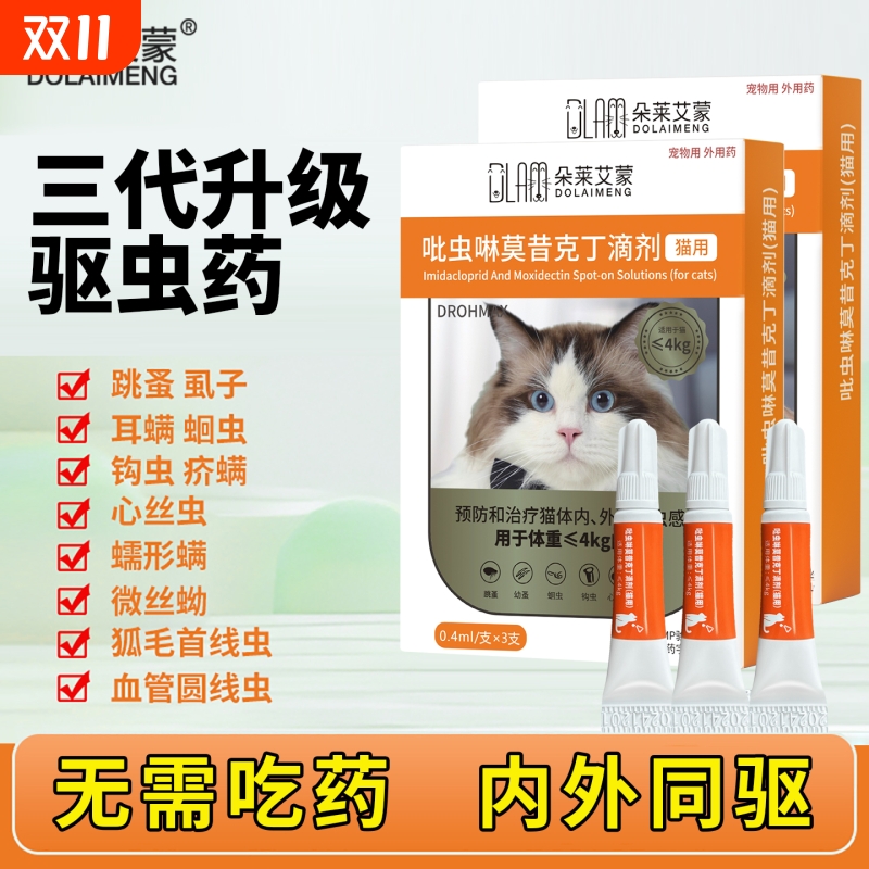 双十一专属6粒/盒海乐妙猫咪体外体内同驱体驱虫幼猫驱虫药猫专用