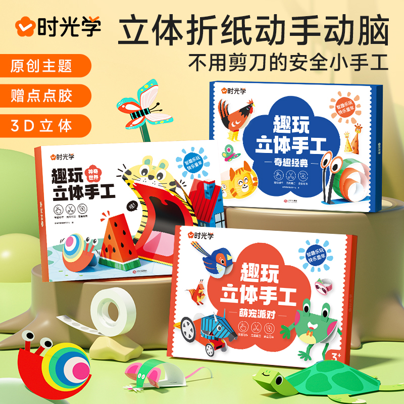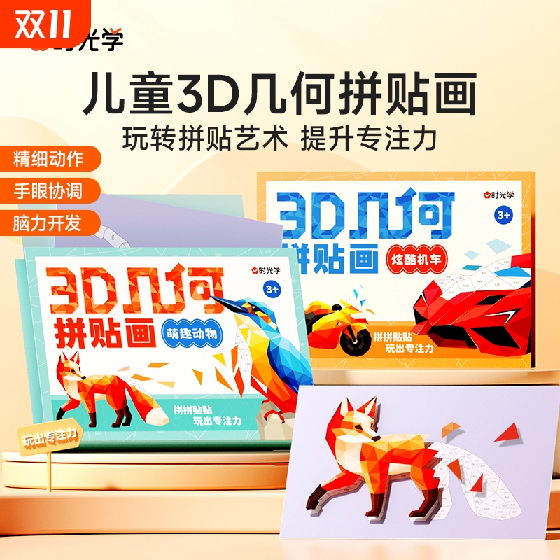 时光学儿童3D几何拼贴画立体益智玩具幼儿园儿童手工diy制作贴纸