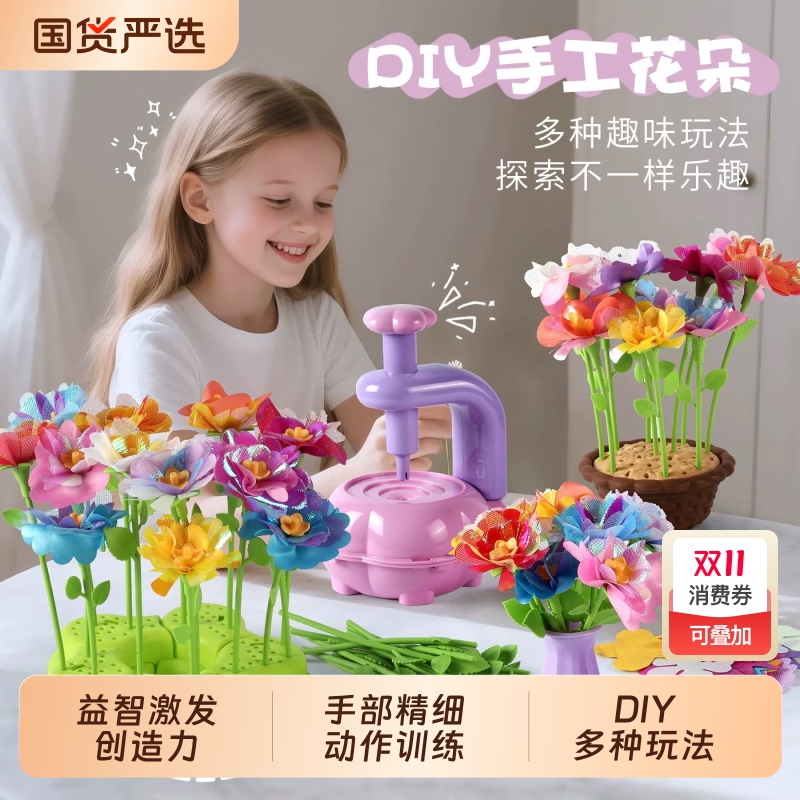 儿童压花机玩具手工diy花朵束7女孩子益智3到6岁创意制作生日礼