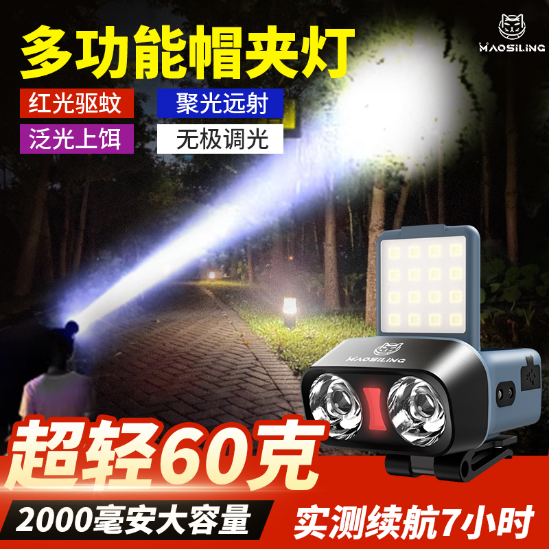 猫司令感应头灯钓鱼专用led强光超亮夜钓灯帽夹灯小型轻便小头灯