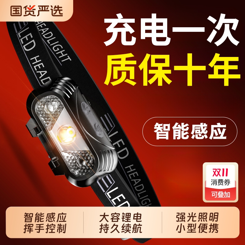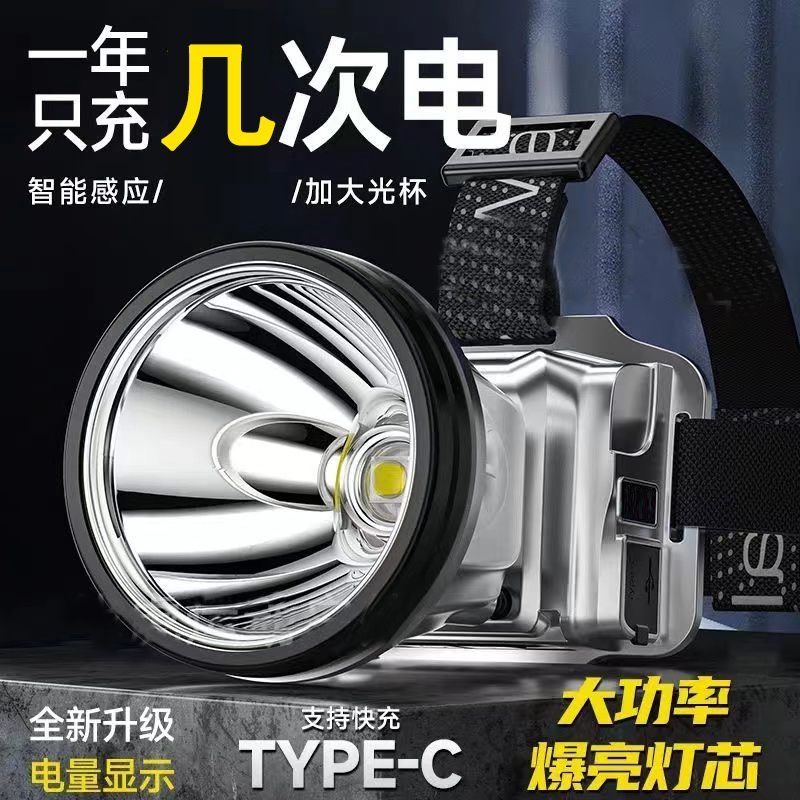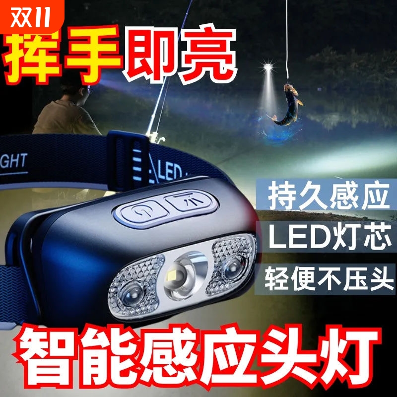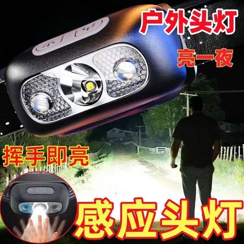 2025新款头灯强光超亮充电头戴式小型感应便携夜钓鱼专用超长续航