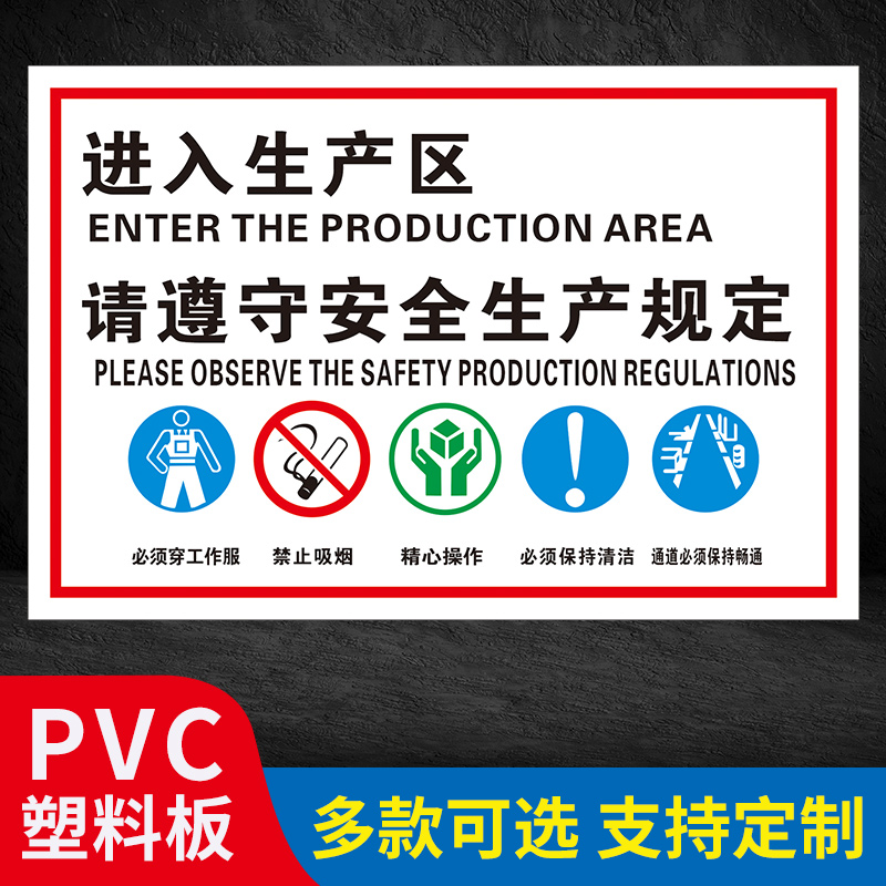进入生产区请遵守安全生产规定车间生产标识牌佩戴好劳保用品做好防护