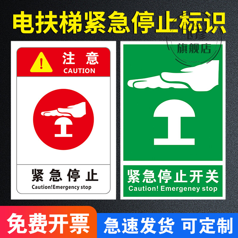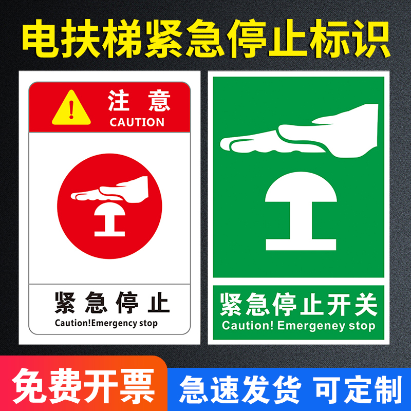 电扶梯紧急停止按钮标识急停按钮开关消防安全警示牌温馨提示贴纸非警