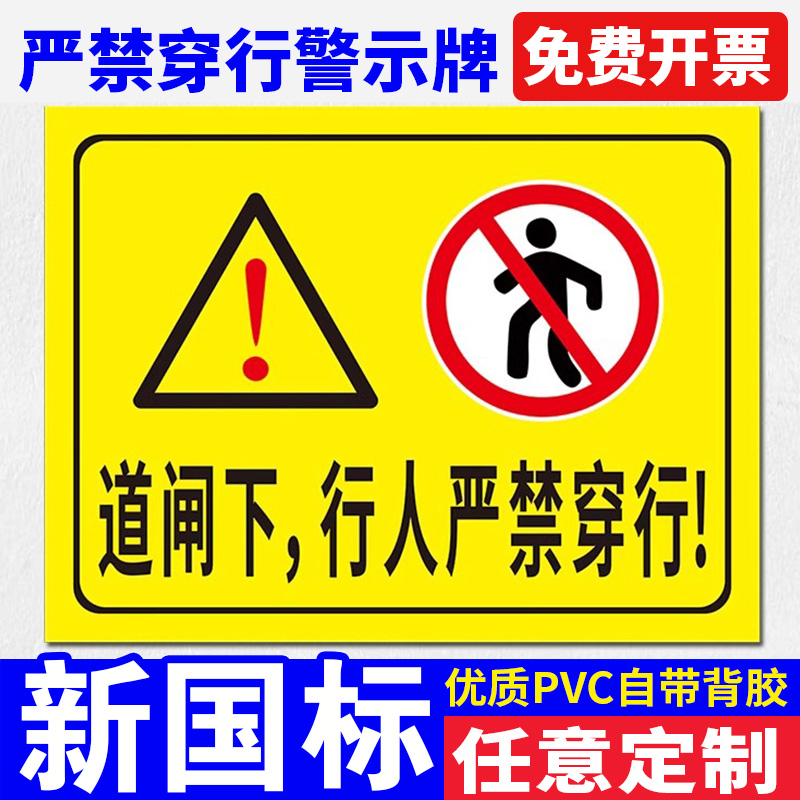 道闸下行人严禁穿行警示牌车库停车场小区单位门禁道闸下严禁行人穿行