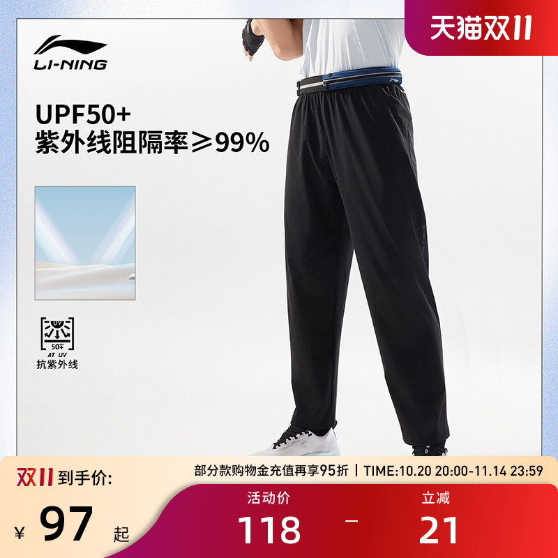 李宁运动服 健身系列 男款冰感速干凉爽抗紫外线防晒运运动长裤
