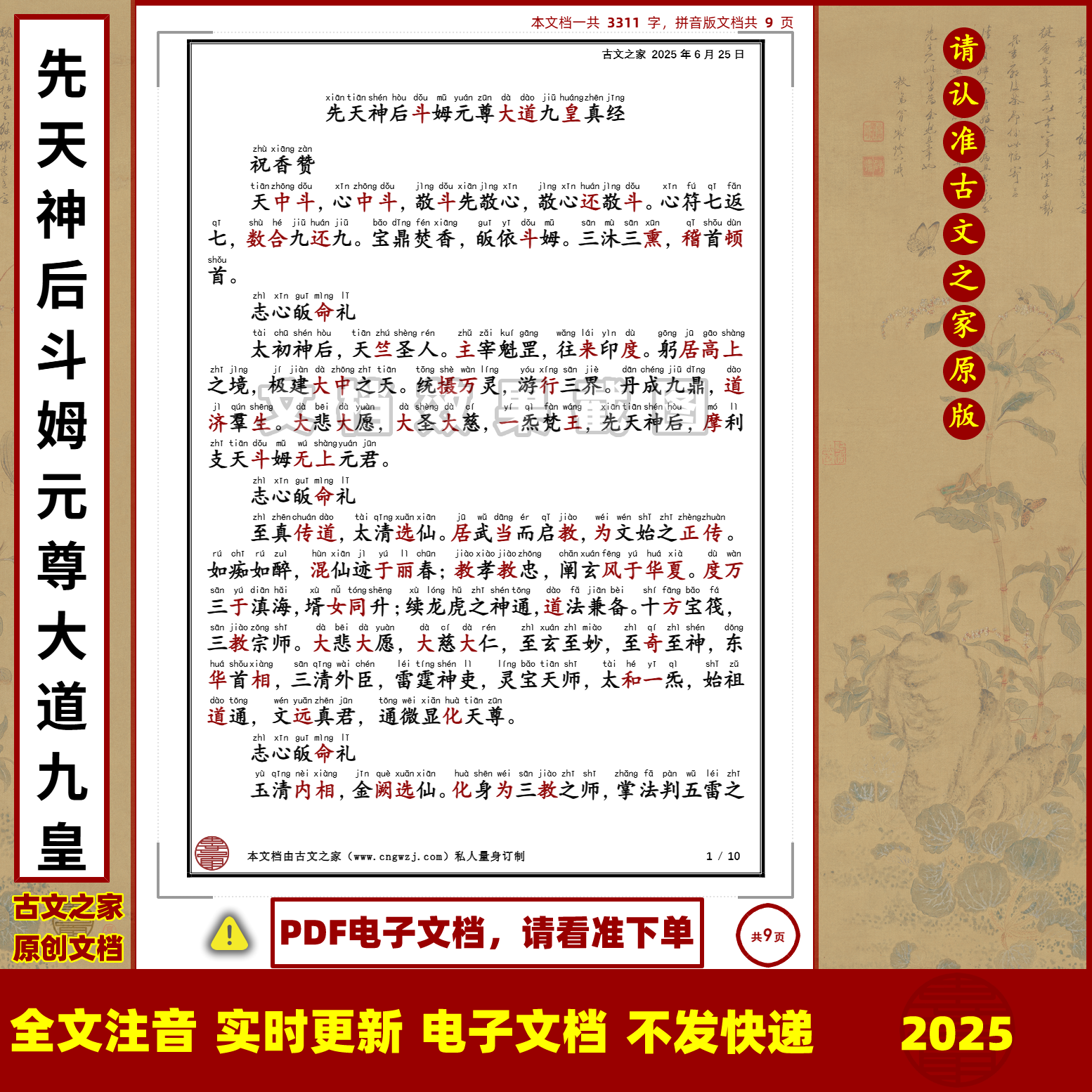 先天神后斗姆元尊大道九皇真经拼音版可打印电子版全文注音非书本