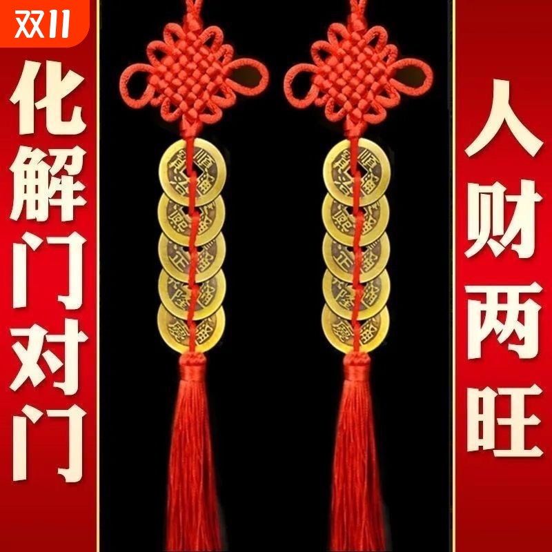 五帝钱挂件真品铜钱串化解入户门纯铜吉祥结五吊钱古币卧室摆件