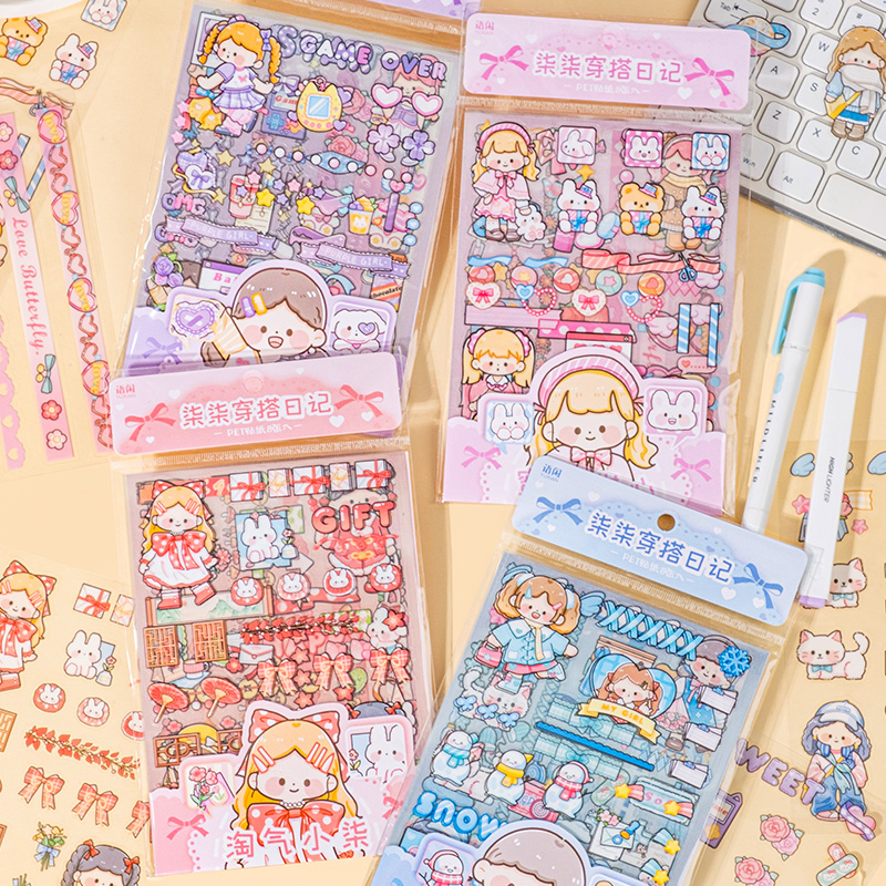 语闲新款柒柒穿搭日记pet贴纸4款