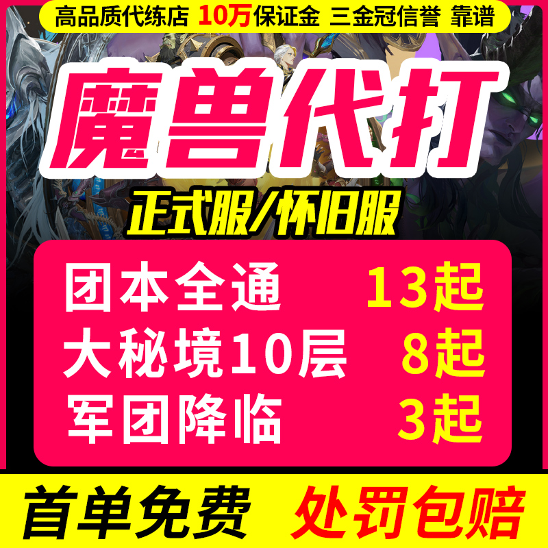 【赔钱接】魔兽世界代打练正式服升级军团再临幻境新生h团本m低保