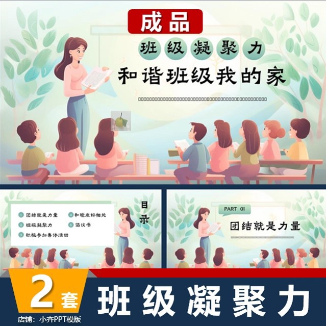 班级凝聚力主题班会PPT模版中小学和谐班级我的家教育课件
