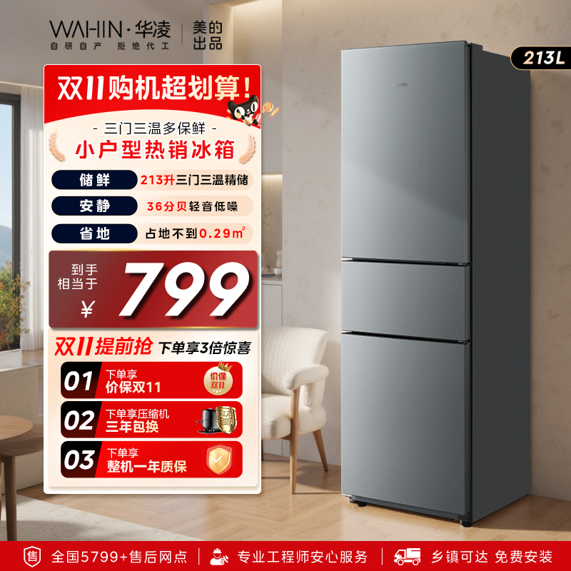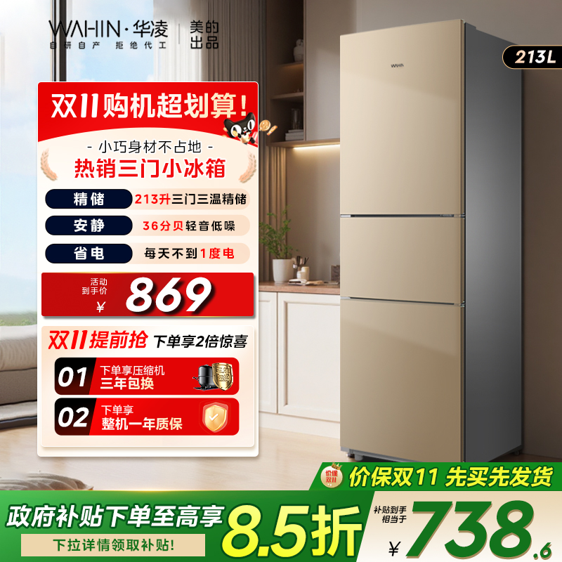 华凌213三开门家用小型冰箱